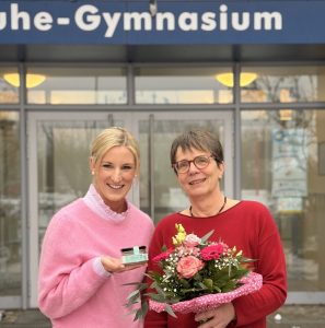 Im Rahmen der Feierlichkeiten überreichte die Schulleiterin Frau Kerstin Kuhn stellvertretend an Frau Domroes einen Blumenstrauß als Zeichen der Anerkennung und des herzlichen Dankes. Mit einem kleinen Präsent würdigte sie zudem die Arbeit der sechs festangestellten Mitarbeitenden der Schulküche, die täglich die verschiedenen Teams organisieren, koordinieren und anleiten und so für einen reibungslosen Ablauf sorgen.